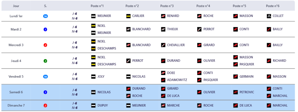 For the realization of a provisional schedule in a multi-site center in summer, 21 men for the day guard, 10 men for the guard on the island, 3 men for the guard of the outpost. That same morning, the pelicandroma to be armed and three additional machines for the GIFF. Without eBrigade, it would have been difficult to find in less than two hours.