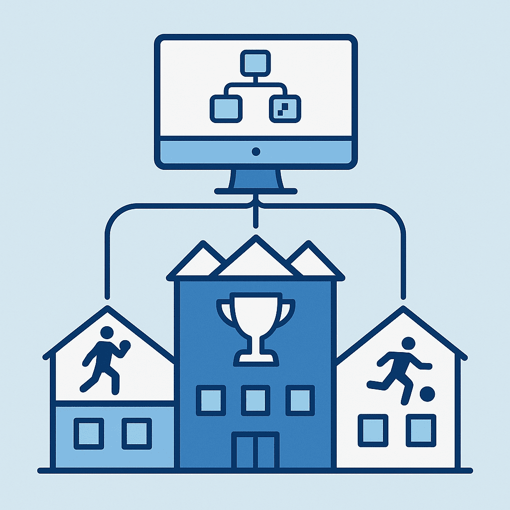Gérez vos clubs affiliés, comités départementaux, ligues et sections locales grâce au module multi-organisation.