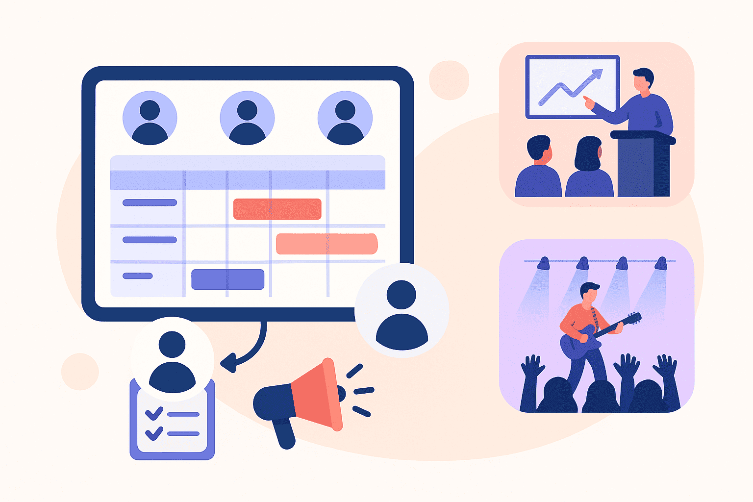 Planifiez, staffez, diffusez, vendez. Tout ce qu’il vous faut, du planning à la billetterie, en passant par les inscriptions externes.