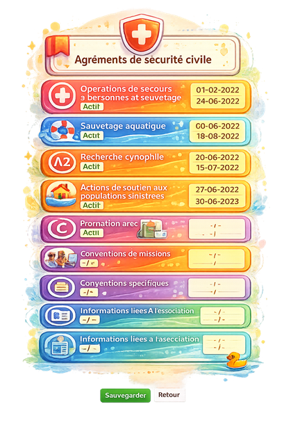 Créez, modifiez ou supprimez vos agréments à votre guise.
