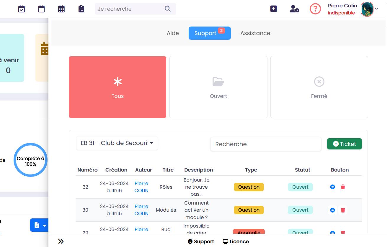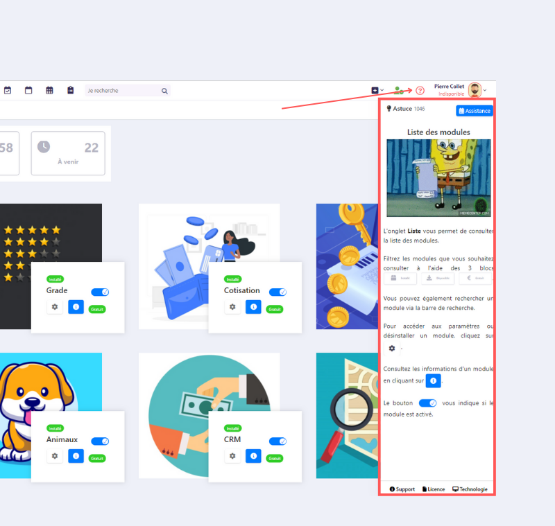 Chaque utilisateur au sein de votre organisation peut bénéficier du module aide.