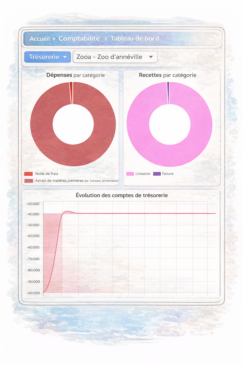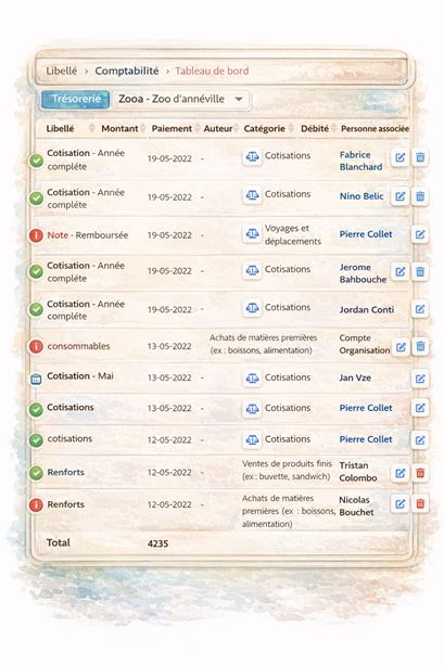 Mettez automatiquement à jour votre comptabilité en incluant les finances de vos activités et les cotisations de votre personnel grâce à ce module connecté au reste du logiciel.