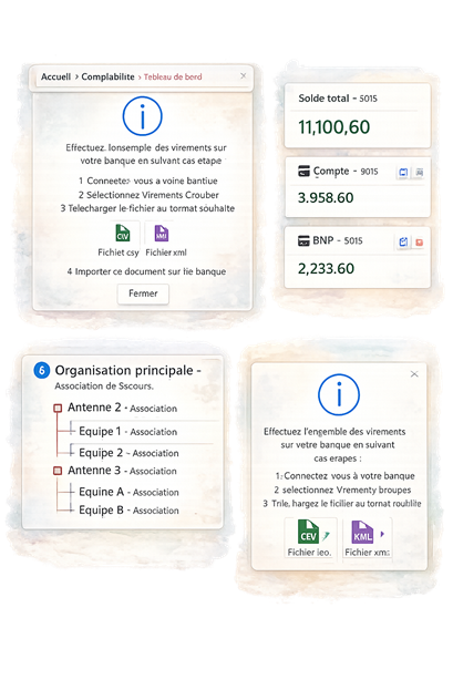 Suivez et fluidifiez les remboursements de votre organisation grâce au module comptabilité d'eBrigade. Vous pouvez exporter l'ensemble des virements à effectuer sous forme d'un fichier bancaire.