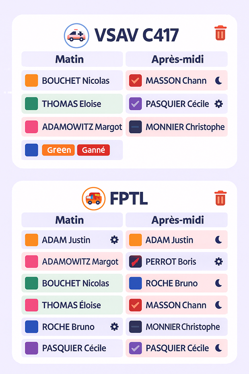 Créez automatiquement des tableaux de garde comprenant les bonnes compétences et véhicules en fonction des disponibilités de votre personnel.