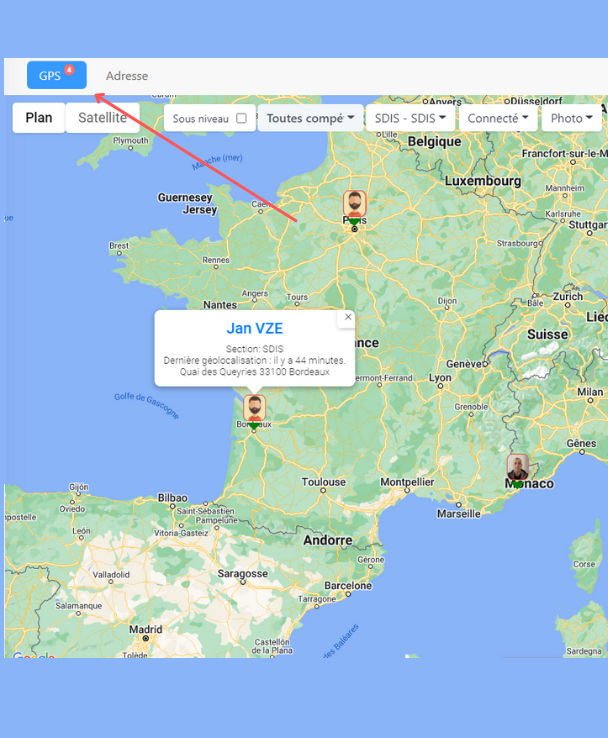 Visualisez-en un clic la position exacte de votre personnel qui l'accepte.