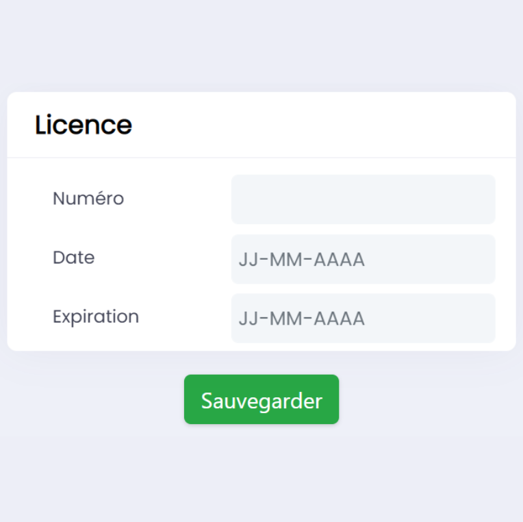 Renseignez le numéro de licence et ses dates d'obtention et d'expiration.