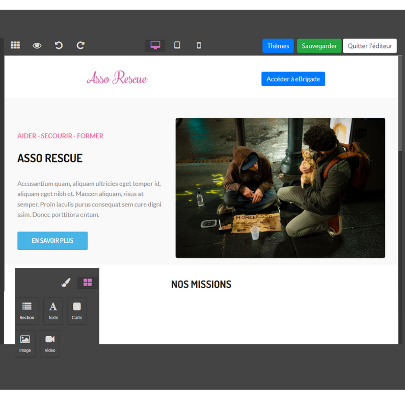 Avec ce module, vous avez la possibilité de créer un site internet à l’image de votre structure ! Modification et personnalisation, tout est mis à votre disposition pour créer la vitrine parfaite et diffuser votre travail. En quelques clics, votre organisation bénéficie d’un site professionnel unique et attrayant. eBrigade vous accompagne et vous propose une multitude de thèmes déjà prédéfinis. Vous pouvez vous en inspirer, les modifier et surtout définir votre propre contenu très simplement.